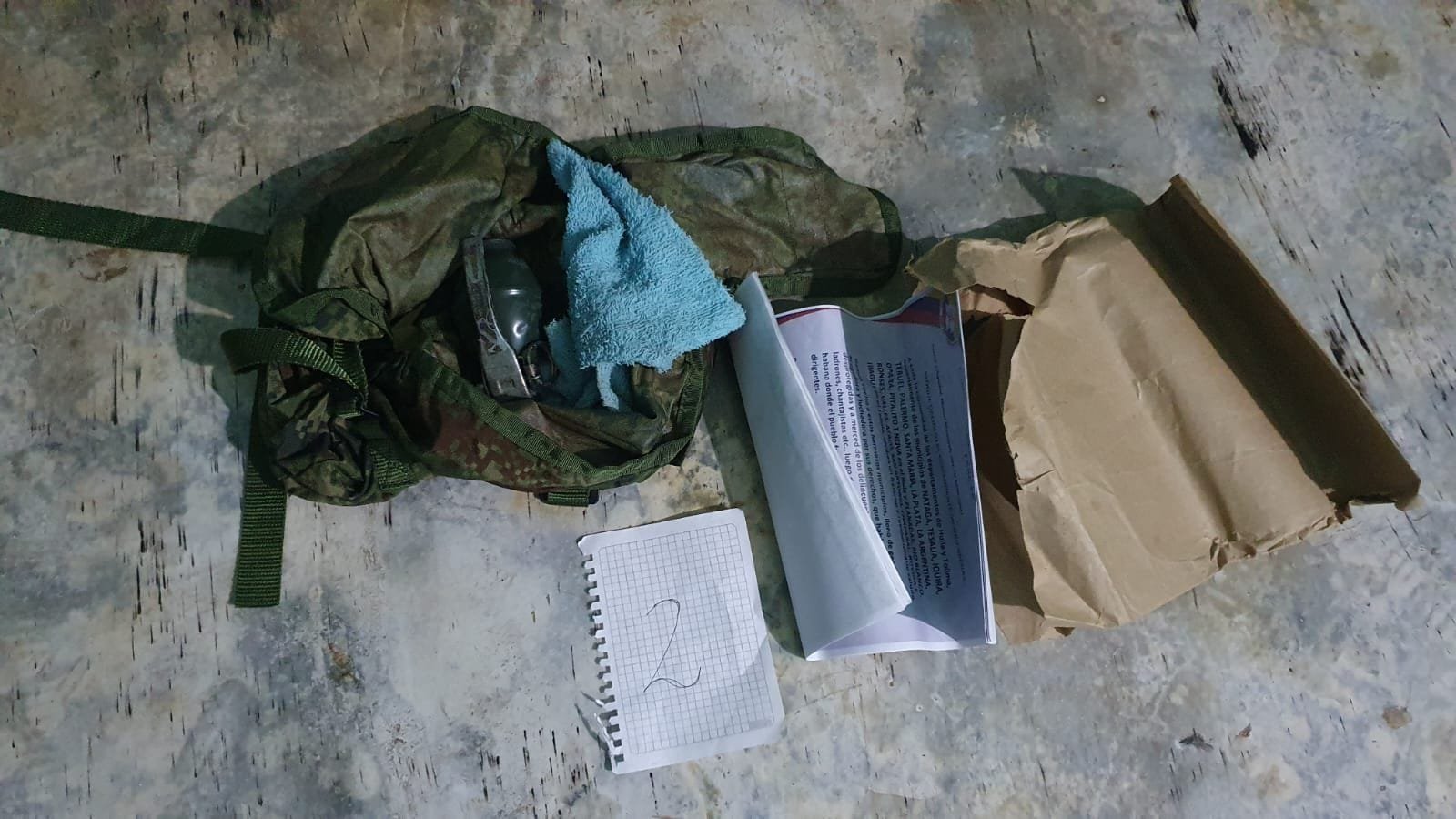 En los allanamientos se logró la incautación de una granada de fragmentación, munición de guerra y varios panfletos extorsivos y alusivos a las disidencias del frente Ismael Ruíz.