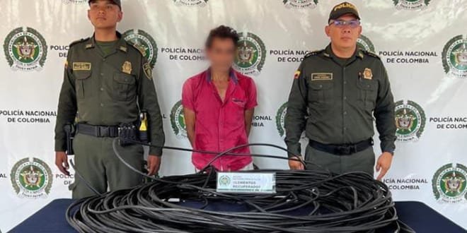 Es así como uniformados de la patrulla de vigilancia adscrita al CAI Alpes, logran la captura de un hombre conocido como «El Cucho» de 68 años de edad, a quien se le halló cerca de 300 metros de cable encauchetado valuado aproximadamente en 2 millones de pesos.