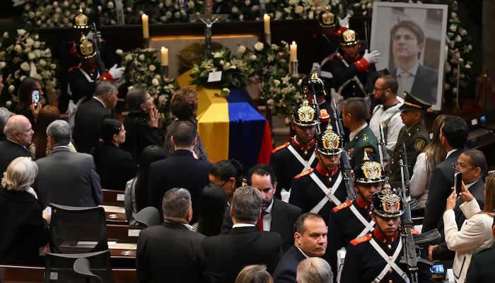 Entre los asistentes destacaron expresidentes como César Gaviria, Ernesto Samper y Juan Manuel Santos, además de una representación diplomática internacional. Una de las escenas más conmovedoras fue protagonizada por su hijo menor, Alejandro, y su esposa María Claudia Tarazona, quienes ofrecieron un gesto simbólico dejando rosas blancas sobre el ataúd del senador, en un momento cargado de emotividad.