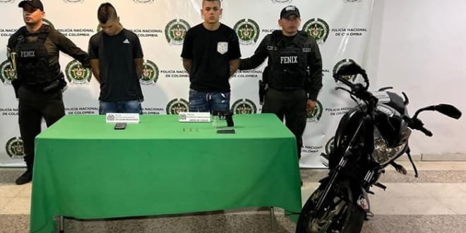 Erik y Edy «Los Mellos» quienes son señalados por la ciudadanía del sector comercio por el hurto en motocicleta, fueron dejados a disposición de la autoridad competente por los delitos de, Porte ilegal de armas de fuego y Falsedad marcaría, donde un juez de control y garantía decidió cobijar con medida de aseguramiento en establecimiento carcelario.