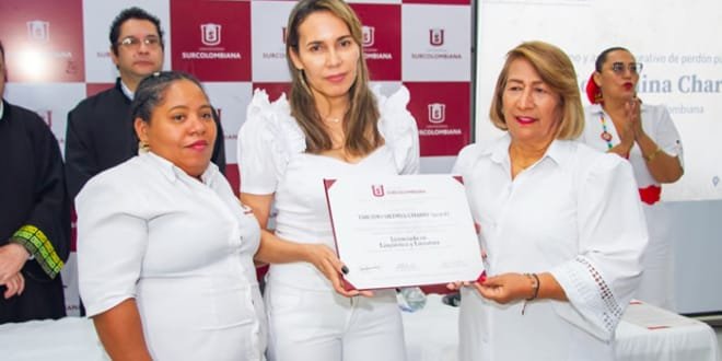 Acto seguido, le fue entregado a Marly Jhoana Medina, el diploma póstumo que acredita a Tarcisio Medina Charry, como licenciado en lingüística y literatura de la Universidad Surcolombiana.
