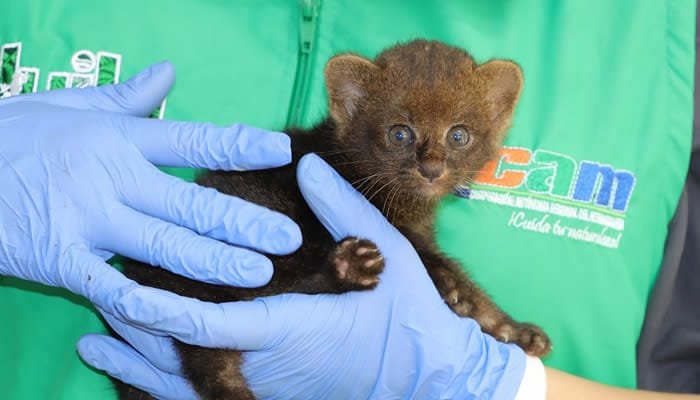 Una cría de yaguarundí (Herpailurus yagouaroundi) fue rescatada en una vía del municipio de Rivera, tras ser hallada sola y deshidratada por la comunidad. El felino, de apenas 250 gramos, fue trasladado por la Policía al Hogar de Paso de Fauna Silvestre de la CAM en Neiva, donde comenzó su proceso de atención y crianza artificial.