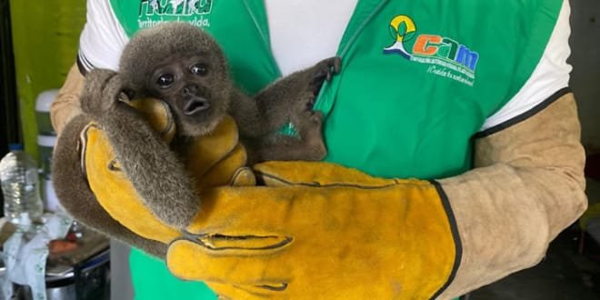 Médicos veterinarios del Hogar de Paso de Fauna Silvestre de la Corporación Autónoma Regional del Alto Magdalena – CAM en Neiva, recibieron una cría de Mono churuco (Lagothrix lagotricha), que habría sido extraída de su hábitat natural en el municipio de San Vicente del Caguán, departamento del Caquetá.