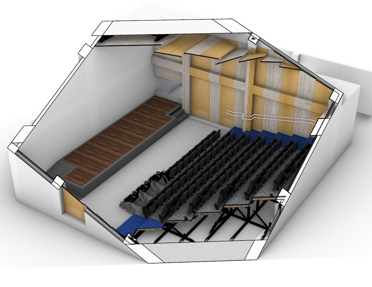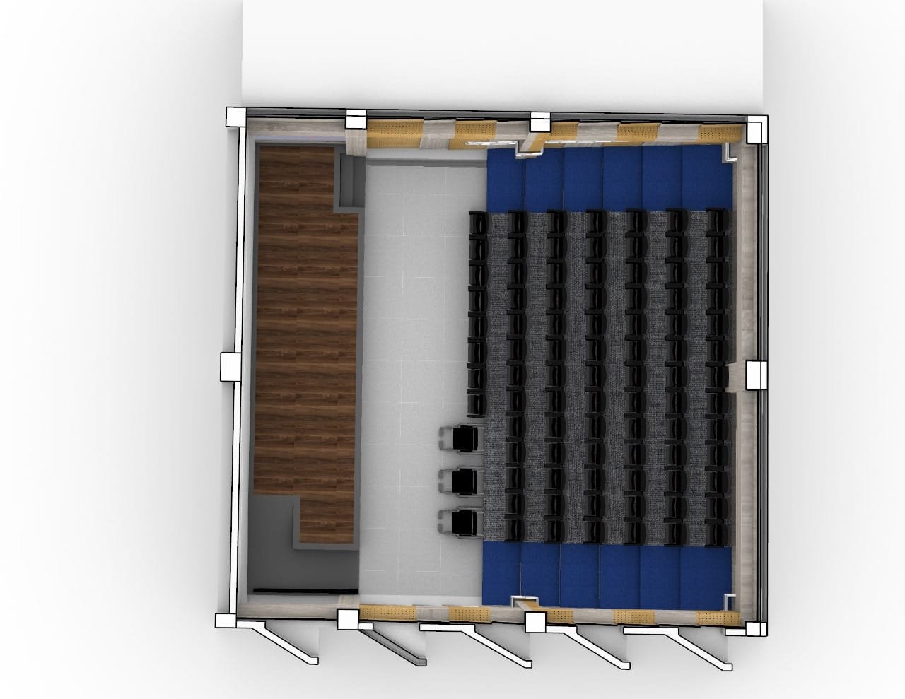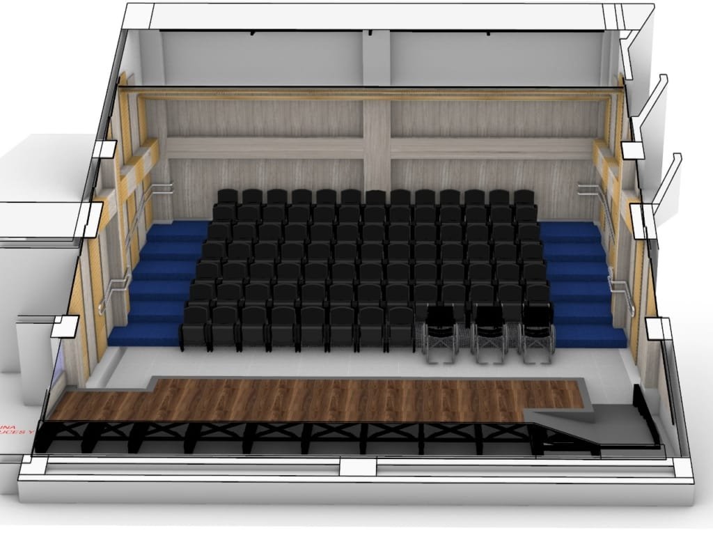 “Vamos a trabajar en la insonorización total del auditorio (paredes, techo y columnas), cambiaremos el actual sistema de iluminación, reforzaremos el sistema de aire acondicionado, el cual será dirigido por un cuarto de control”, agregó Facundo sobre los trabajos que se realizarán en el auditorio, el cual contará además con dos entradas: principal y de emergencias.
