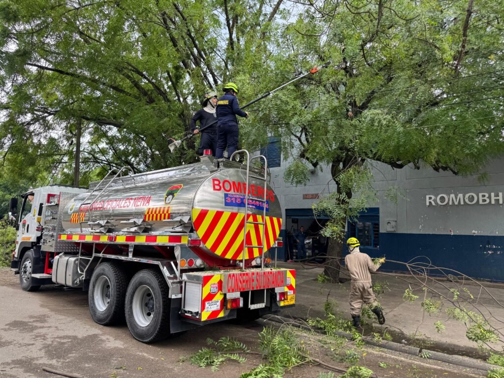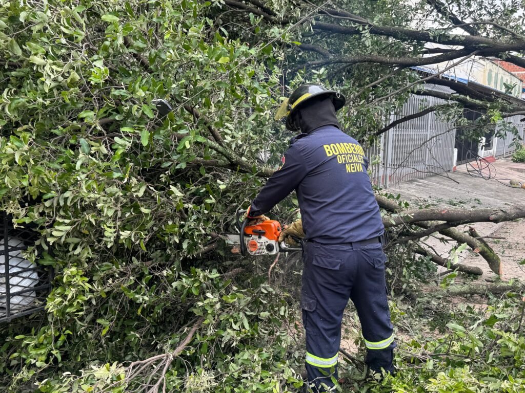 Más de 50 unidades del Cuerpo Oficial de Bomberos de Neiva han trabajado en distintos puntos de la ciudad para retirar árboles y prevenir nuevos riesgos. En las labores también participan la Defensa Civil Colombiana, la Cruz Roja Colombiana, Bomberos Voluntarios, además de Ejército y Policía.